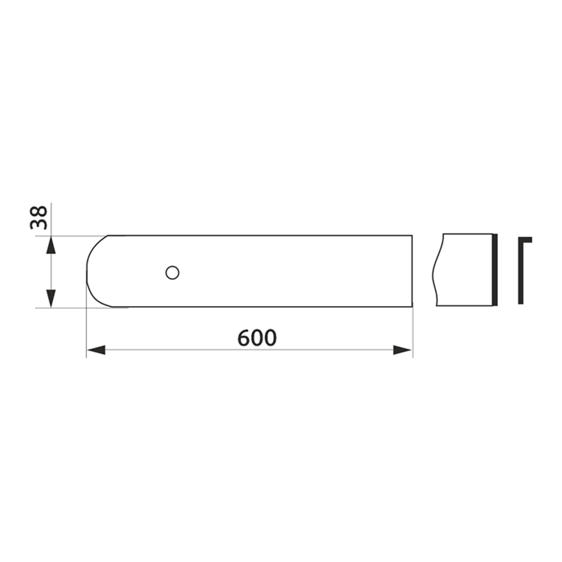 Накладка на столешницу 38 правая U-закругленная (R-6)