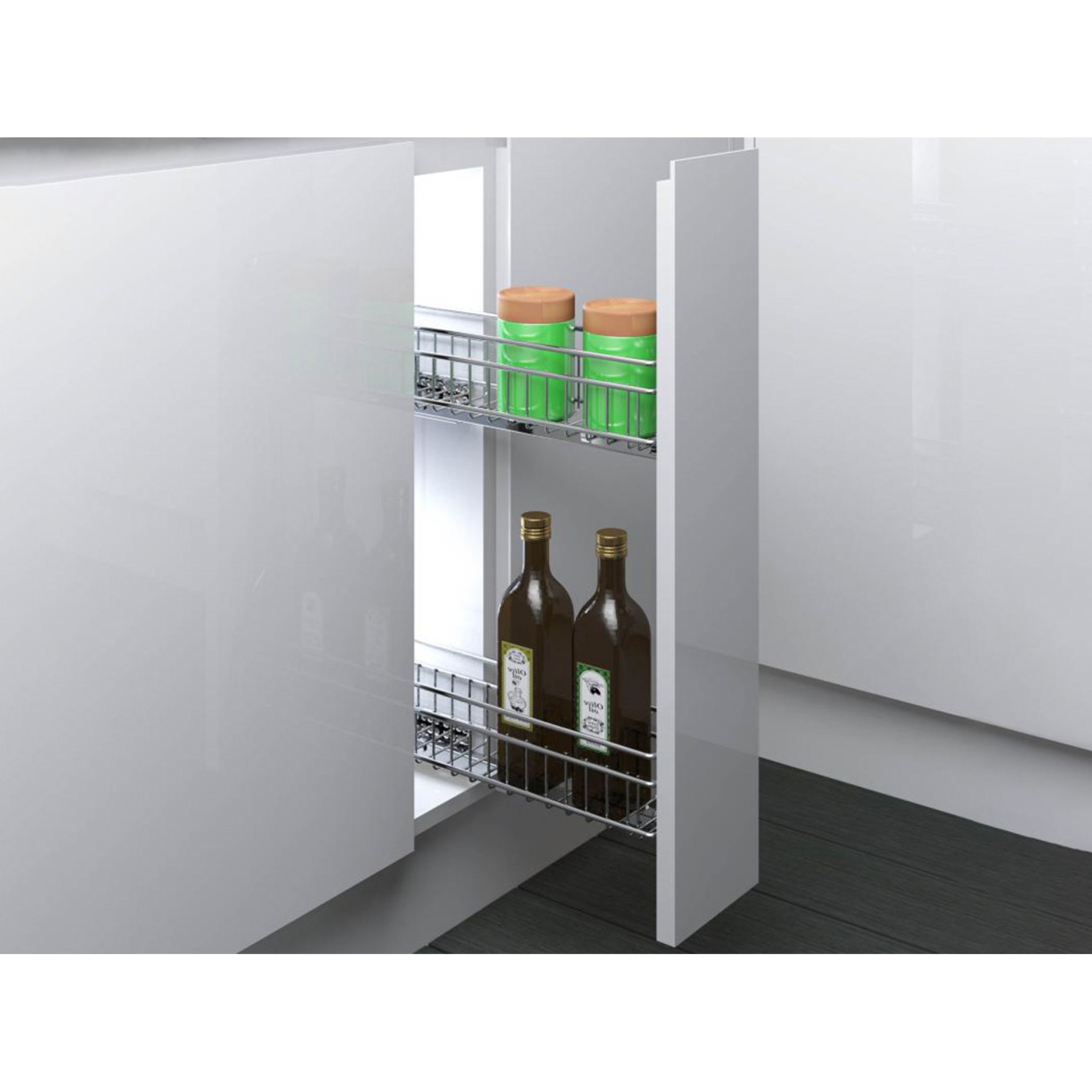 Карго Inoxa c механизмом Push to Open подходят для современной мебели без ручек: открывается нажатием на фасад, в направляющих установлен push-толкатель. Минимальная глубина каркаса для установки сетчатой корзины - 475 мм.