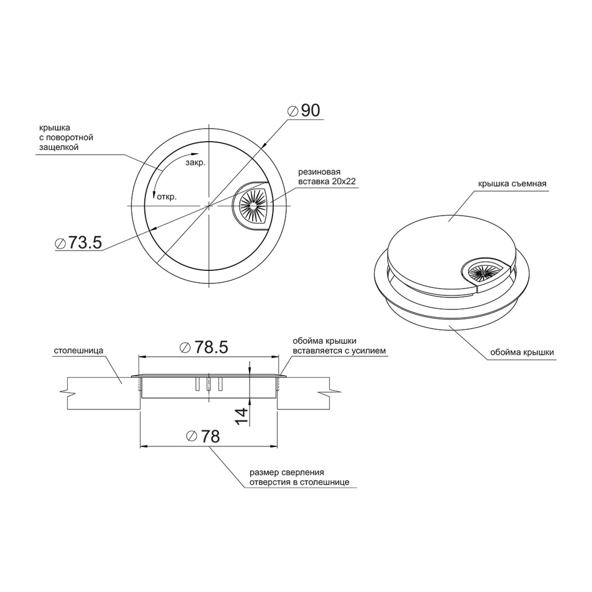 Розмір, ДхВ, мм: 90 х 14