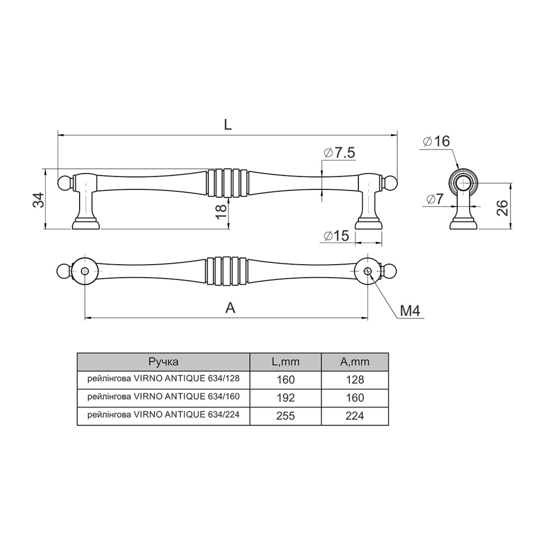РУЧКА РЕЛИНГ VIRNO ANTIQUE 634/160 ПАТИНИРОВАННАЯ БРОНЗА