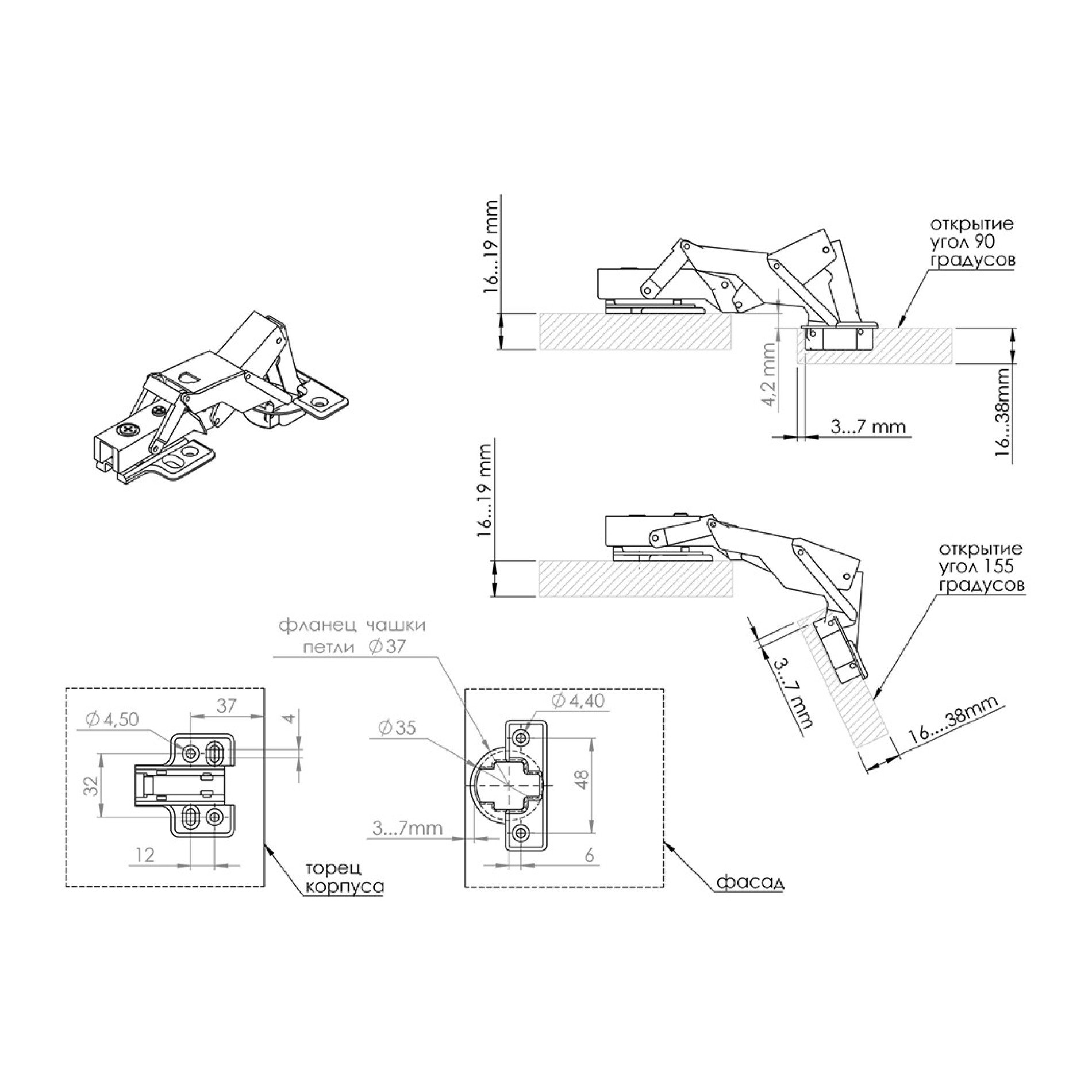 Глибина сверління під чашу, мм: 12